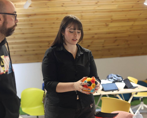 Todos esos avances se los han enseñado en una de las sesiones del proyecto “Talent future care&health” del HUB de la Aldehuela a estudiantes llegados desde Burgos, donde cursan Terapia ocupacional. Los alumnos han trabajado por grupos y la técnico de Intras Sofía Ballesteros les ha asignado a los alumnos distintos roles, de personas mayores, familiares o profesionales para tratar de detectar necesidades del usuario e intentar ver cómo les dan solución a través de tecnologías innovadoras.