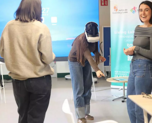 En las instalaciones del HUB de la Aldehuela se han programado para ello hasta once talleres con alumnos de centros universitarios y de formación profesional a los que se muestra el funcionamiento y las aplicaciones, por ejemplo, del robot NAO a la hora de que los mayores hagan gimnasia y ejercicio físico; o de una plataforma integral de rehabilitación física y cognitiva que utiliza realidad virtual, inteligencia artificial adaptativa y el internet de las cosas para ayudar a la recuperación tras sufrir un ictus.