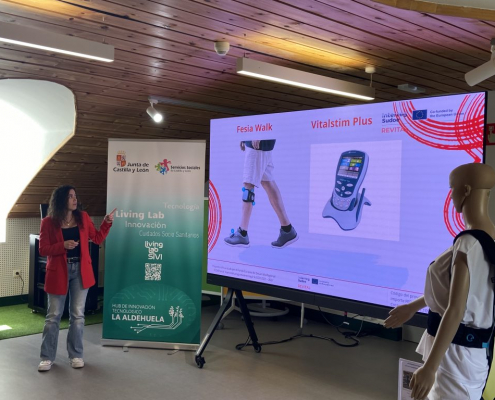 Asimismo, se profundizó en las áreas de cambio que REVITAL pretende impulsar, entre ellas la incorporación de servicios avanzados de teleasistencia y telerehabilitación, apoyados en tecnologías innovadoras. En este contexto, se presentaron los miembros del consorcio, las soluciones tecnológicas empleadas —incluyendo exoesqueletos aplicados a la neurorrehabilitación— y el desarrollo de los pilotajes, ilustrados con ejemplos técnicos, experiencias y datos relevantes del proceso seguido.